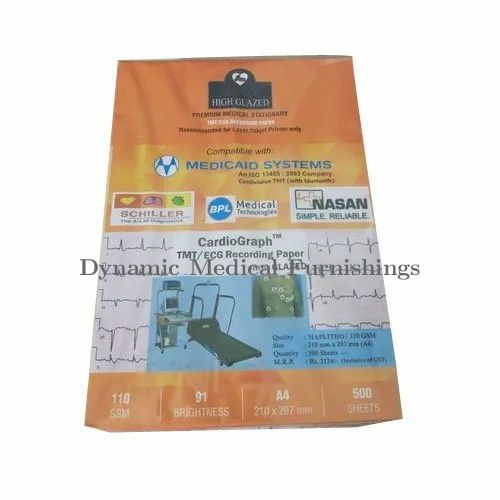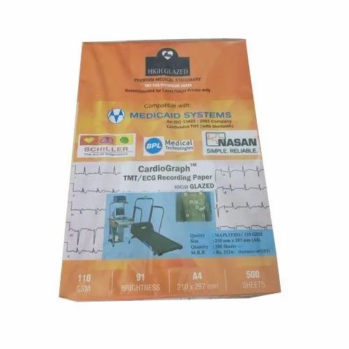 Sized at 210 × 297 mm, matching the universally recognised A4 format — compatible with flatbed recorders and printers designed for ECG/TMT output.